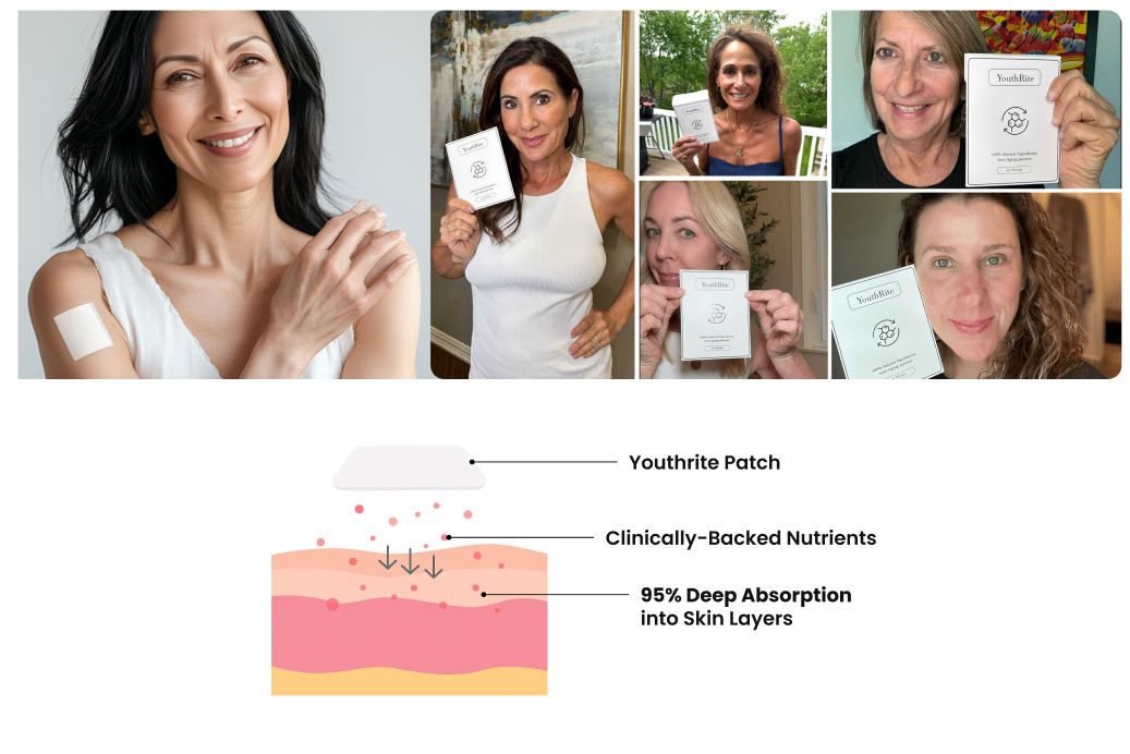 That's when I created YouthRite - a revolutionary transdermal patch that bypasses all the absorption problems plaguing traditional treatments. Instead of hoping a cream penetrates your skin, the patch delivers nutrients directly where they're needed.